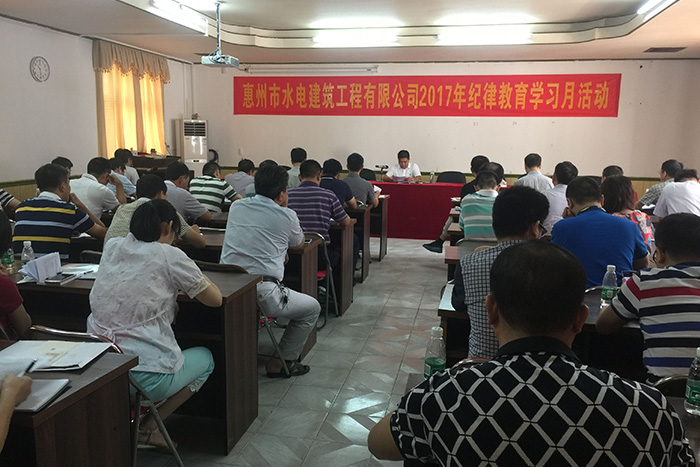 2017年9月18日上午,惠州市水电建筑工程有限公司党委召开党委中心组学习扩大会议,传达学习中央关于意识形态工作的重大部署和基本要求及2017年纪律教育学习月活动,会议由公司党委书记郑海强主持。