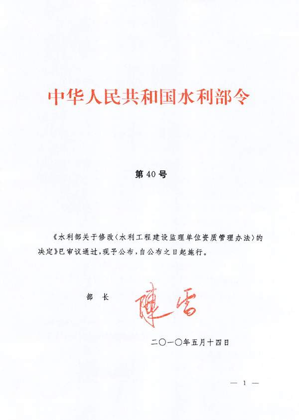 水利部关于修改《水利工程建设监理单位资质管理办法》的决定-国家法律
