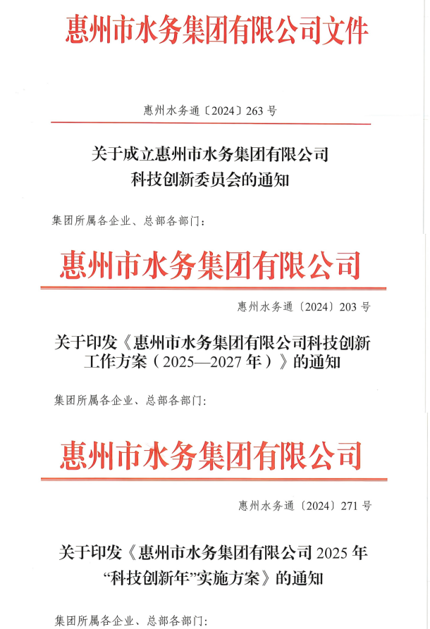 组建水务科技公司:组织绿水公司组建“惠州市水务科技有限公司”,明确集团负责推动科技创新工作的主体单位。