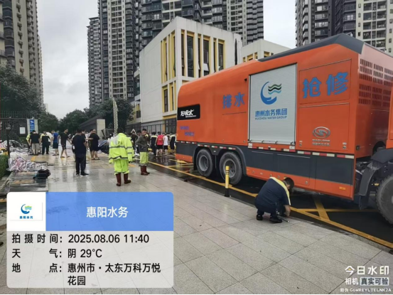 “暴雨无情,供水有爱”惠阳水务始终将保障民生用水放在首位。目前,排水工作仍在紧张进行中,待具备抢修条件后,公司将立即组织专业技术力量对受损供水设施开展全面排查和抢修,力争在最短时间内恢复小区正常供水。同时,将持续关注各小区排水及设施恢复进展,动态调整服务举措,与社区居民携手同心,共克时艰,确保居民用水安全、稳定,全力守护城市供水“生命线”,为惠阳安全度汛贡献水务力量。
