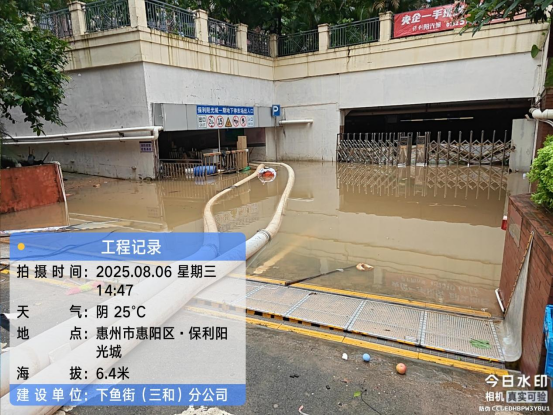 受连续强降雨影响,8月5日惠阳部分小区地下车库出现雨水倒灌,导致二次供水设施受损浸水,居民正常用水受到影响。面对突发汛情,万币(中国)官方网站 惠阳水务迅速启动应急响应机制,主动担当、靠前服务,全力以赴保障居民基本用水需求,助力社区尽快恢复正常生活秩序。