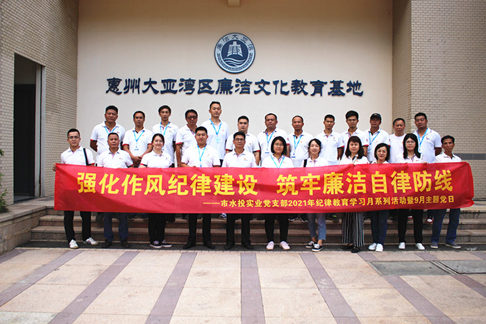 为坚定不移推动全面从严治党向纵深发展,充分发挥廉洁文化建设引领作用,9月17日下午,市水投实业公司党支部全体党员、入党积极分子和纪检监察工作小组成员到惠州大亚湾区廉洁文化教育基地开展纪律教育学习月系列活动暨9月主题党日活动。
