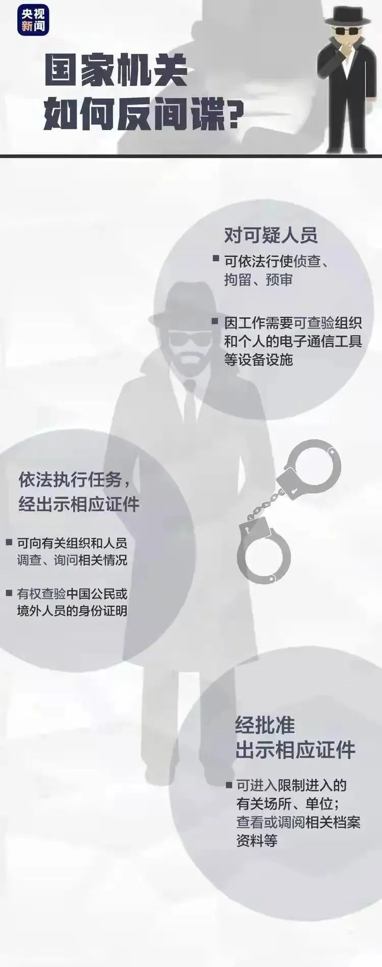 《反间谍法》既为反间谍工作提供了最基本的法律依据,又为在隐蔽战线贯彻落实总体国家安全观作出了具体的制度规划,进一步推进我国反间谍工作的规范化、制度化和法治化,为全面推进依法治国,发挥不可替代的重要作用。让我们通过下面一组图全面了解《反间谍法》。