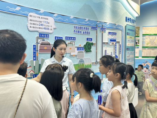 活动伊始,孩子们来到节水教育社会实践基地。在室外,专业人员生动讲解水情知识,介绍海绵城市道路建设理念,孩子们认真聆听;在室内,大家有序参观惠州供水文化展览馆,踊跃参与节水知识问答互动,在趣味中加深对水资源的认知。
